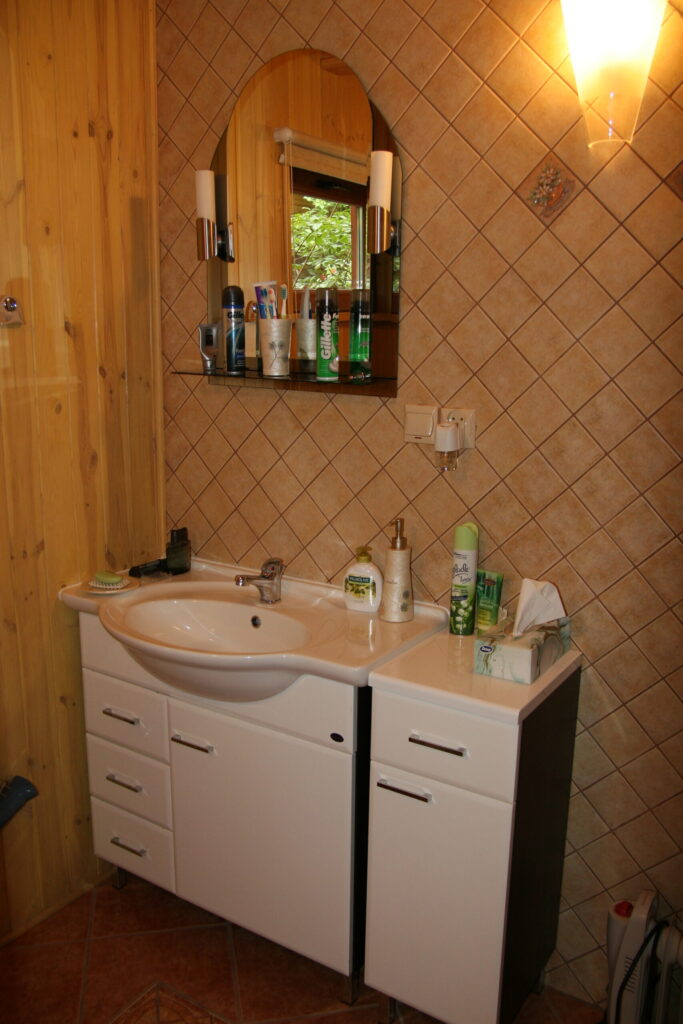 Na parterze znajduje się oczywiście jeszcze łazienka wraz z kabiną prysznicową oraz pralką (detergenty są na miejscu). Dla najmłodszych przygotowaliśmy specjalną wanienkę dziecięcą. W łazience znajduje się również suszarka do włosów.