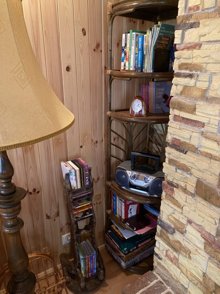Dodatkowo na dolnym poziomie znajduje się pomieszczenie gospodarcze, wyposażone we wszystko co potrzebujemy do utrzymania czystości. Znajdziemy tam deskę do prasowania wraz z żelazkiem, odkurzacz, mopy, szczotki i dla Waszego bezpieczeństwa gaśnicę oraz apteczkę. Przygotowaliśmy również dla Was maseczki oraz płyny dezynfekujące do rąk.